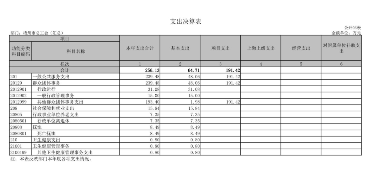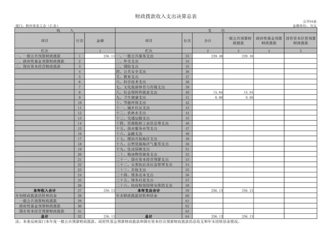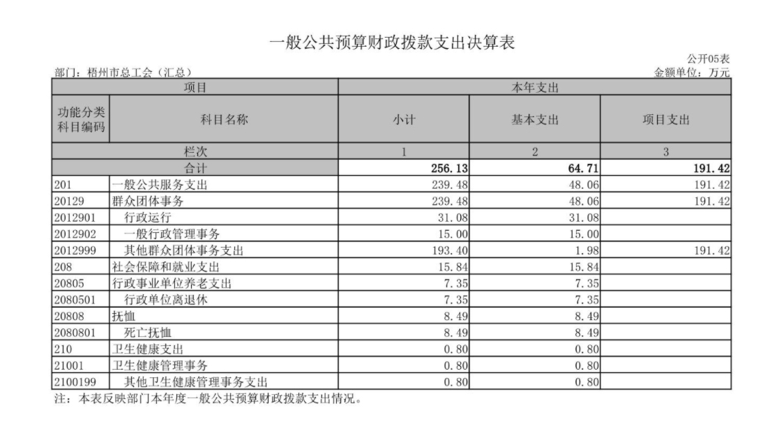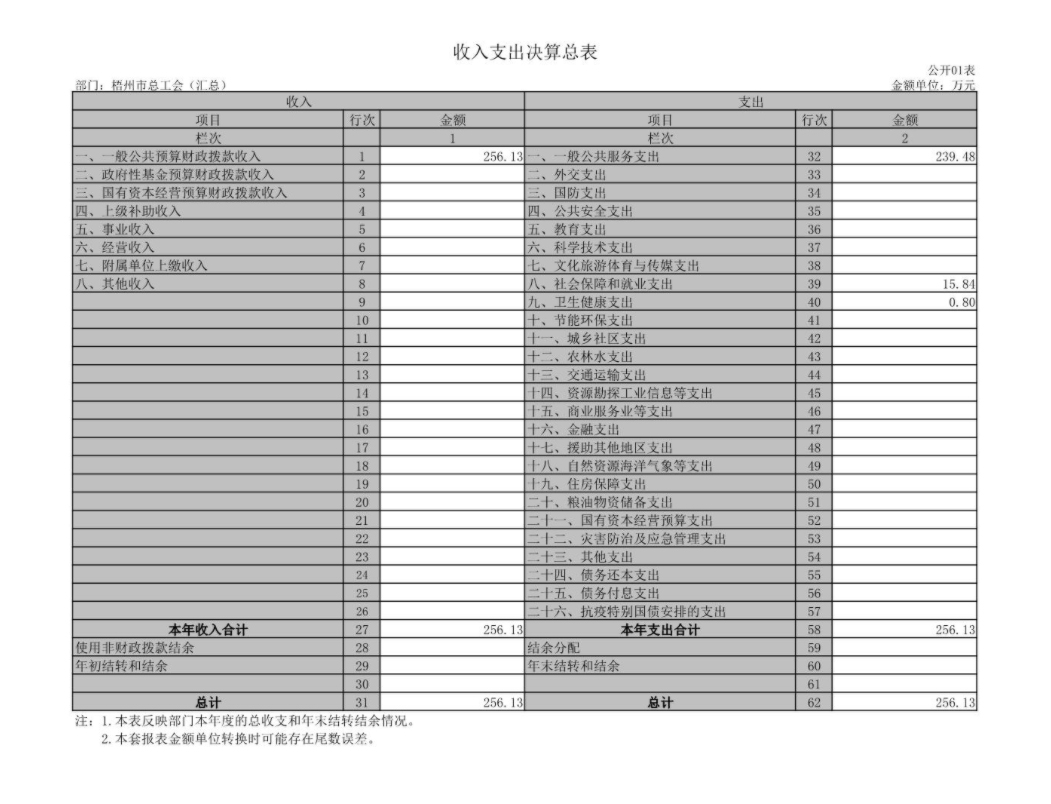 梧州市總工會(huì)2021年度部門(mén)決算報(bào)表