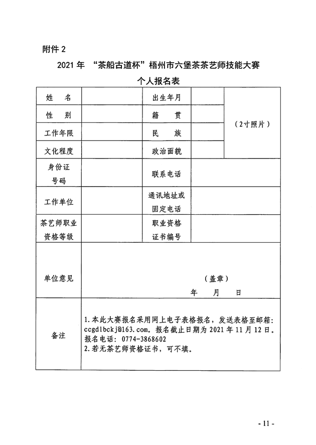 附件2-2021年 “茶船古道杯”梧州市六堡茶茶藝師技能大賽個人報(bào)名表.docx