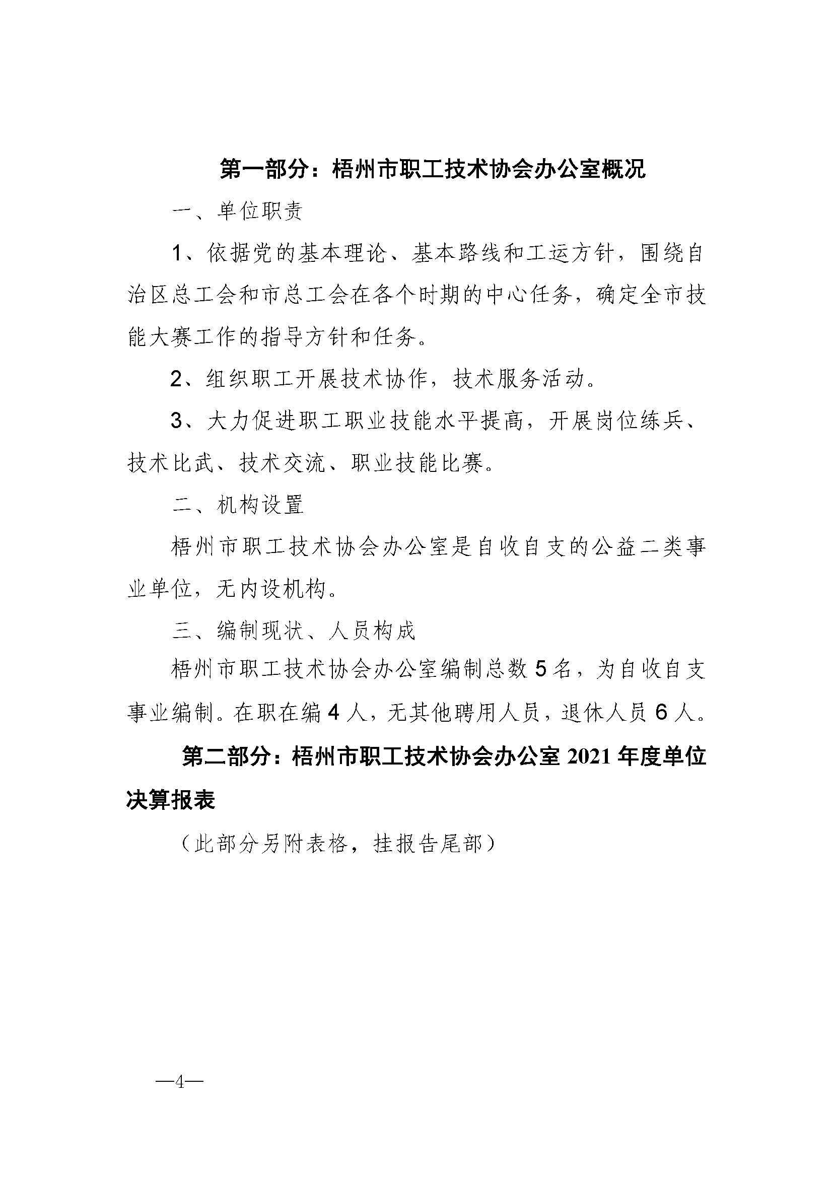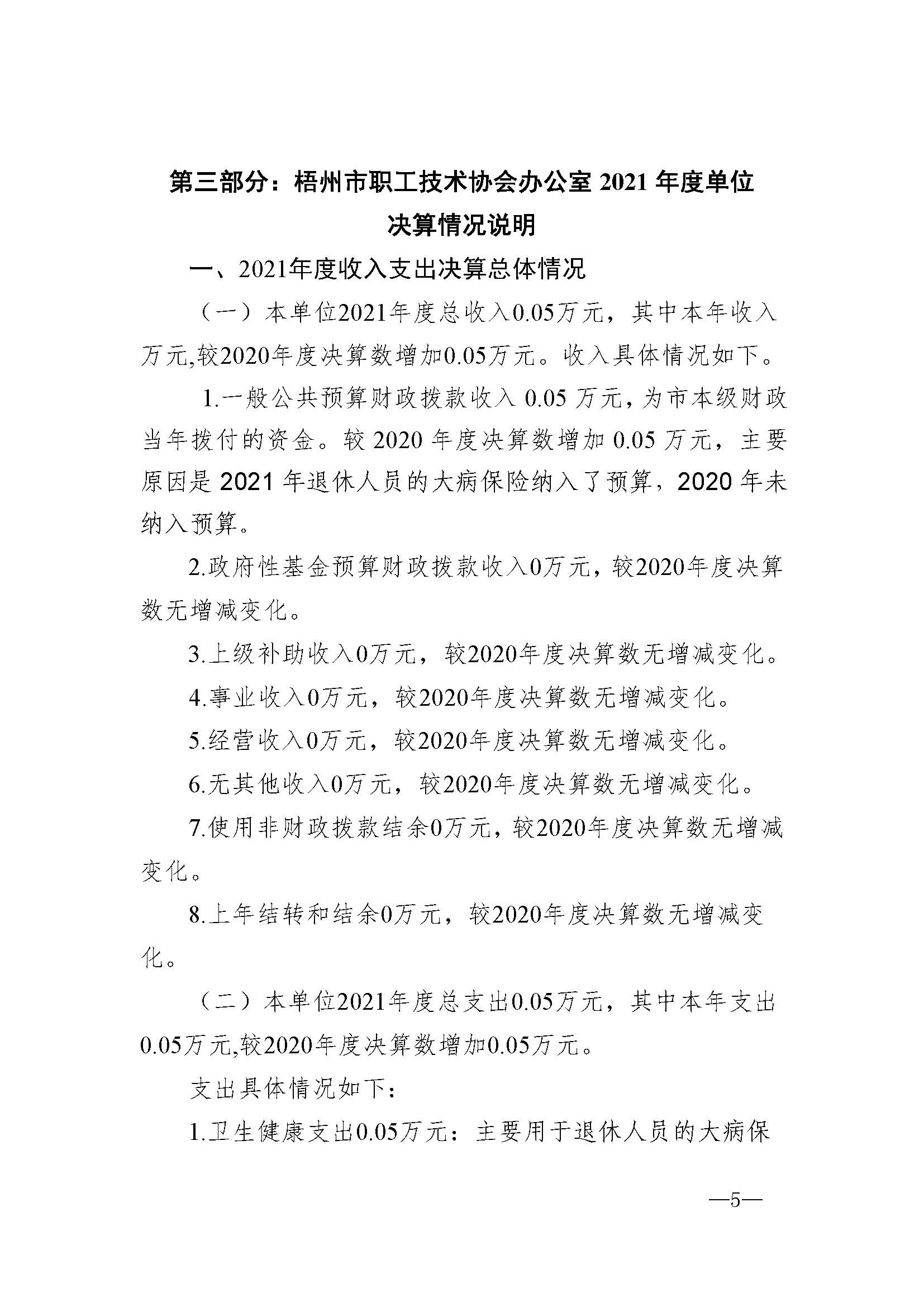 梧州市職工技術協(xié)會辦公室2021年單位決算
