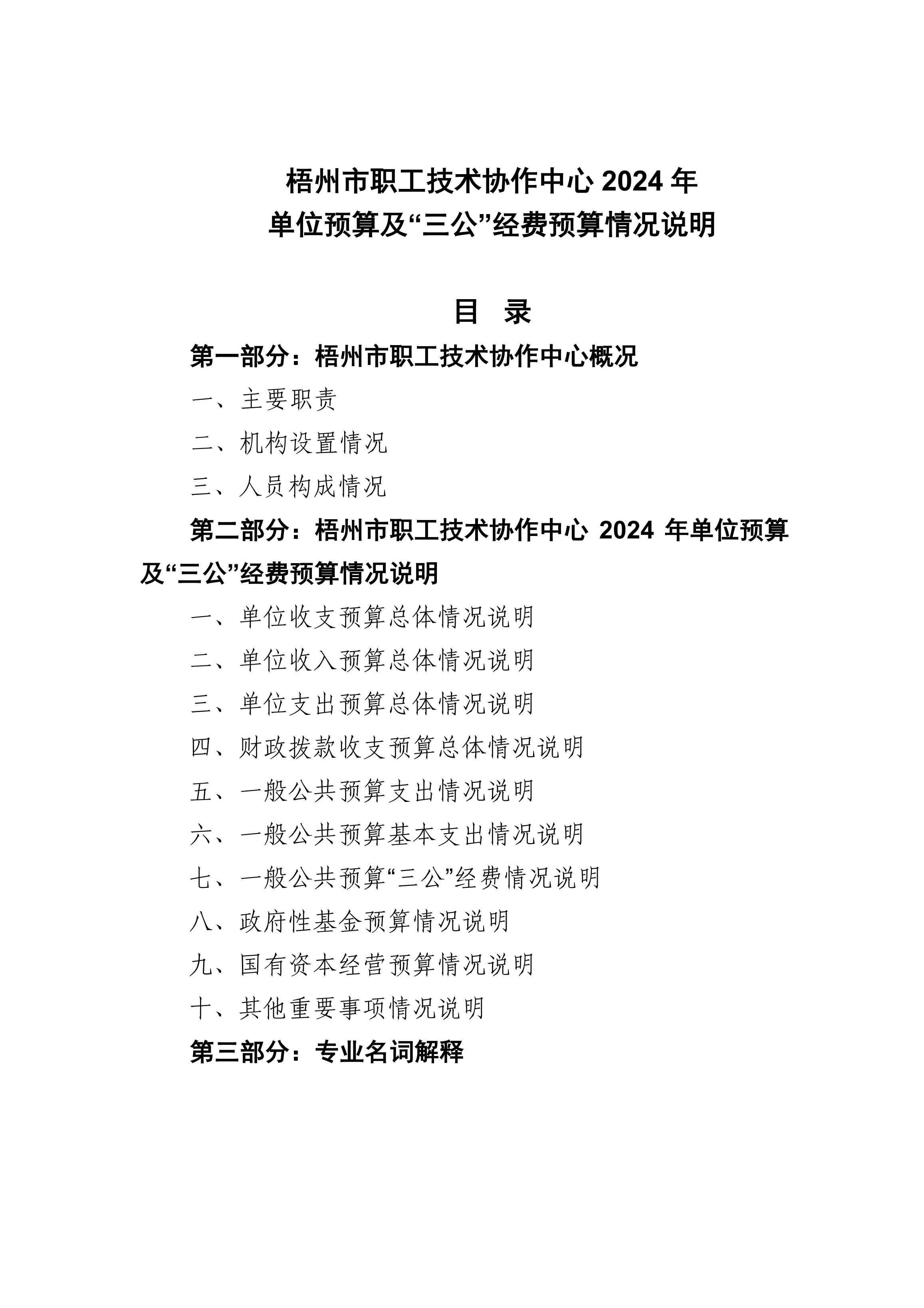 [單位預(yù)算]梧州市職工技術(shù)協(xié)作中心2024年單位預(yù)算及“三公”經(jīng)費(fèi)預(yù)算情況說明.pdf