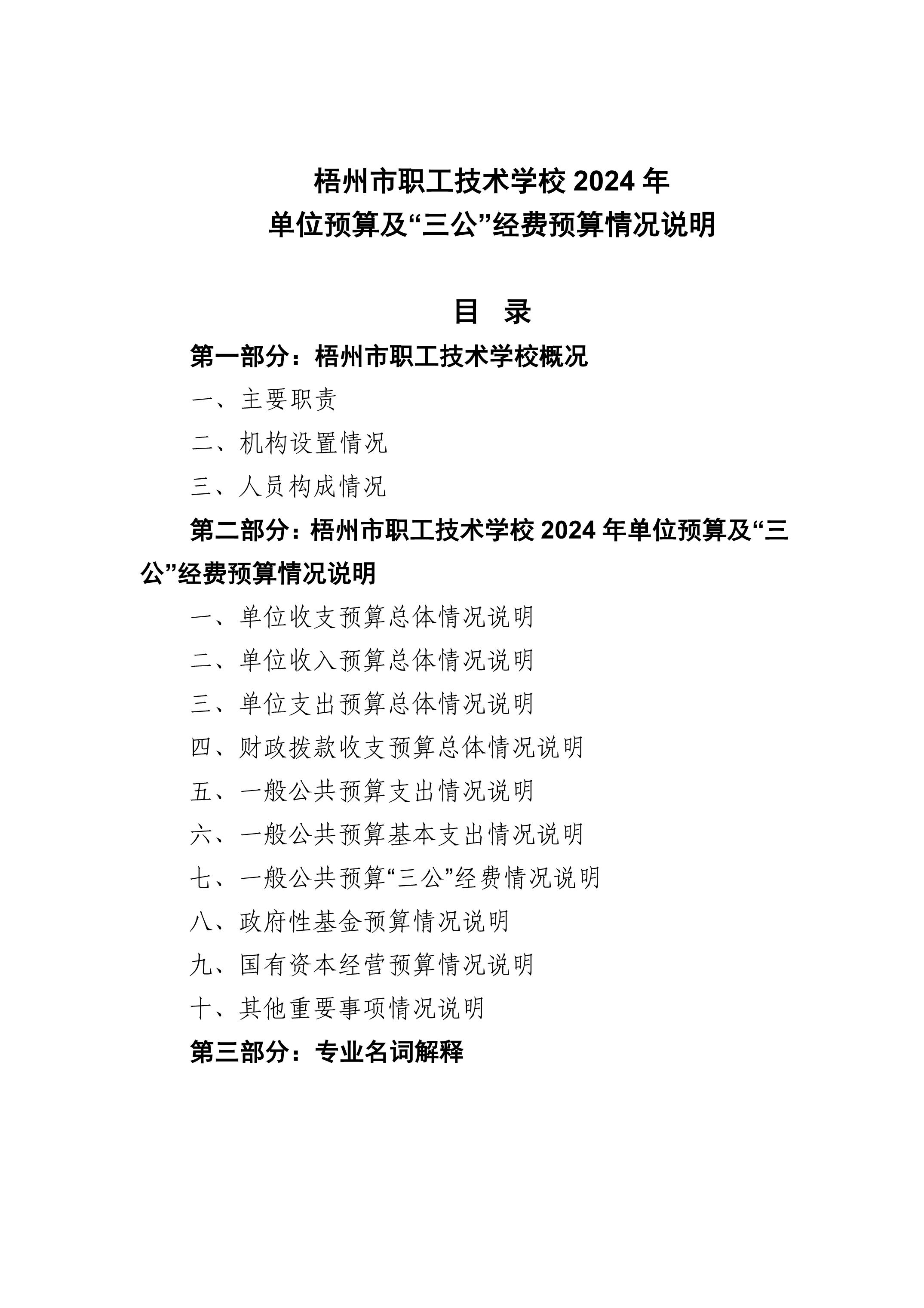 [單位預(yù)算]梧州市職工技術(shù)學(xué)校2024年單位預(yù)算及“三公”經(jīng)費(fèi)預(yù)算情況說明