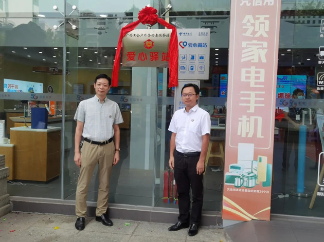 近日,梧州市總工會(huì)和電信梧州分公司共建的“愛心驛站”正式投入使用。市總工會(huì)權(quán)益保障部負(fù)責(zé)人和中國電信梧州分公司副總經(jīng)理馬堅(jiān)毅共同為新落成的“愛心驛站”揭幕,并為驛站店內(nèi)6名愛心大使頌發(fā)證書。