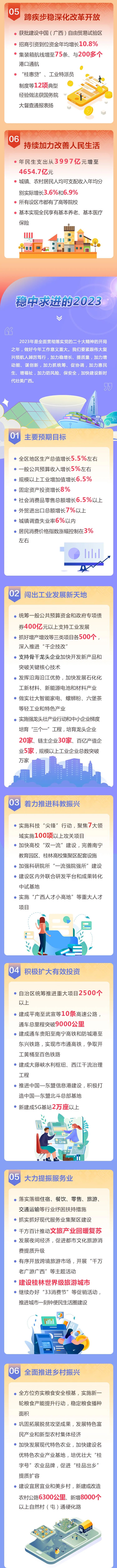 1月12日上午9時,廣西壯族自治區(qū)第十四屆人民代表大會第一次會議開幕會在南寧召開。自治區(qū)主席藍(lán)天立代表廣西壯族自治區(qū)人民政府作政府工作報告。 新鮮出爐的政府工作報告,具體有哪些內(nèi)容?廣西日報-廣西云受權(quán)制作圖解《政府工作報告》,帶你看報告! 一組長圖 帶你了解政府工作報告 ↓↓↓