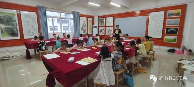 為充分發(fā)揮工會陣地服務(wù)作用,切實為職工辦好事、辦實事。近日,蒙山縣總工會開展首期公益培訓(xùn)志愿服務(wù)活動,活動面向我縣6至16歲的職工子女,培訓(xùn)內(nèi)容包括硬筆書法、毛筆書法、簡筆畫及國畫,每個培訓(xùn)班招收24名學(xué)員,每期培訓(xùn)包括12課時。6月17日在縣總工會綜合大樓培訓(xùn)班正式啟動,培訓(xùn)聘請專業(yè)書法、美術(shù)老師,為90多名書法、美術(shù)愛好者授課。